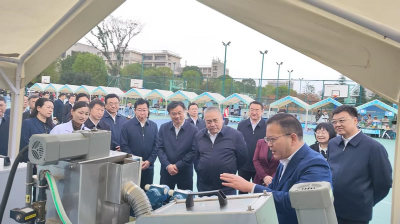 10月,在第七届湖北省中华职业教育创新创业大赛举办期间,装置展示专区吸引了湖北省副省长张文彤、十堰市委书记黄剑雄等省市领导的高度关注。领导们详细听取了装置的研发背景、技术原理、应用场景及市场前景介绍,对校企联合聚焦环保产业、破解污泥处理难题的创新实践给予高度评价,鼓励双方持续深化合作,加速技术成果转化。