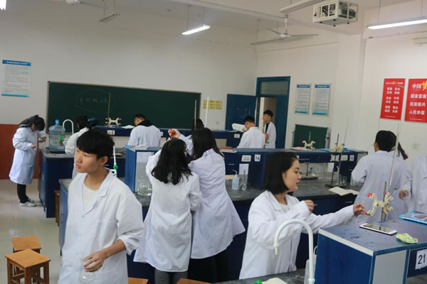 为进一步提升订单班学生的技能,检验其对无机分析与化学专业学习深度,2018年5月12日,由系部联合产学组织了玻璃仪器操作比赛。山鼎·新希望班21名同学分为10组参加。